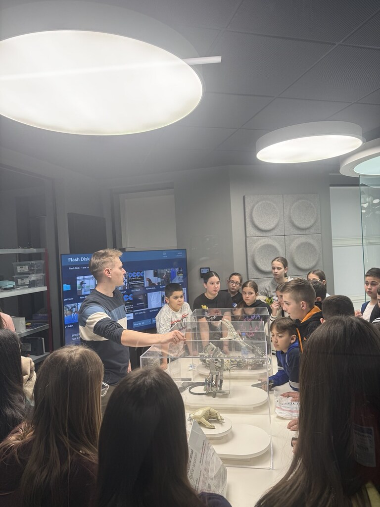 Ученици старијих разреда су у петак, 27. фебруара, посетили Палату науке у Београду, у пратњи својих наставница Татиане Злох и Мирјане Грујић и директорке наше школе, Данијеле Станковић. Видели су највећи интерактивни глобус у Европи, базиран на НАСА подацима, право одело космонаута, симулацију настанка торнада и мерење јачине земљотреса помоћу сеизмографа. Посматрали су препарате под микроскопом који има могућност огромног увећања, те су под њим гледали и своје папиларне линије на прстима руку, што је изазвало велико одушевљење. Такође су имали прилику да управљају летелицом која слеће на Месец, истражују површину Земље, Месеца и Марса, уђу у свет роботике, ботанике, бораве у просторији са различитим видео игрицама и да чују мноштво занимљивих прича научног комуникатора. Управљали су роботском шаком, играли ,, икс-окс” с машином и изводили покрете лица које је робот-човек опонашао. Палата науке је право место за радознале, оне који воле да питају, уче и експериментишу.