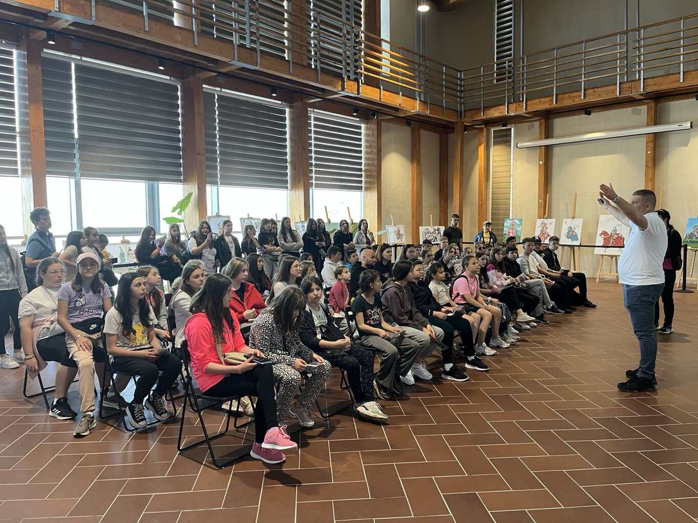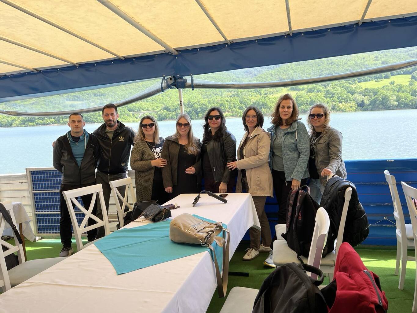 По завршетку ручка, уследила је двосатна вожња бродом по Ђердапској клисури током које су се ученици и њихове одељењске старешине одлично забављали. Сви су били одушевљени импозантном статуом Децебала, уклесаном у стенама. Децебал је био последњи владар Дачана, народа који се сматра прецима данашњих Румуна. Због своје дуготрајне, упорне и већим делом успешне борбе против освајача, Децебал је добио статус националног хероја. Са брода се још могла видети чувена Трајанова табла, из периода похода римског цара Трајана на Дачане (100-103. године). У самој клисури Казан велику пажњу је привукао манастир Мраконија, смештен на румунској страни Дунава. Последње место обиласка било је мезолитски и неолитски локалитет Лепенски вир. Прво су ученици одгледали петнаестоминутни документарни филм о ископавањима професора Драгослава Срејовића која су започета 1965. године, а онда разгледали ово праисторијско насеље са траговима огњишта и каменим скулптурама унутар сваке куће које су постојале. Са ове незаборавне екскурзије сви су понели сјајне утиске, прегршт фотографија и наравно, прелепе сувенире. Била је то још једна прилика да се ученици обе школе друже и јачају пријатељство. |