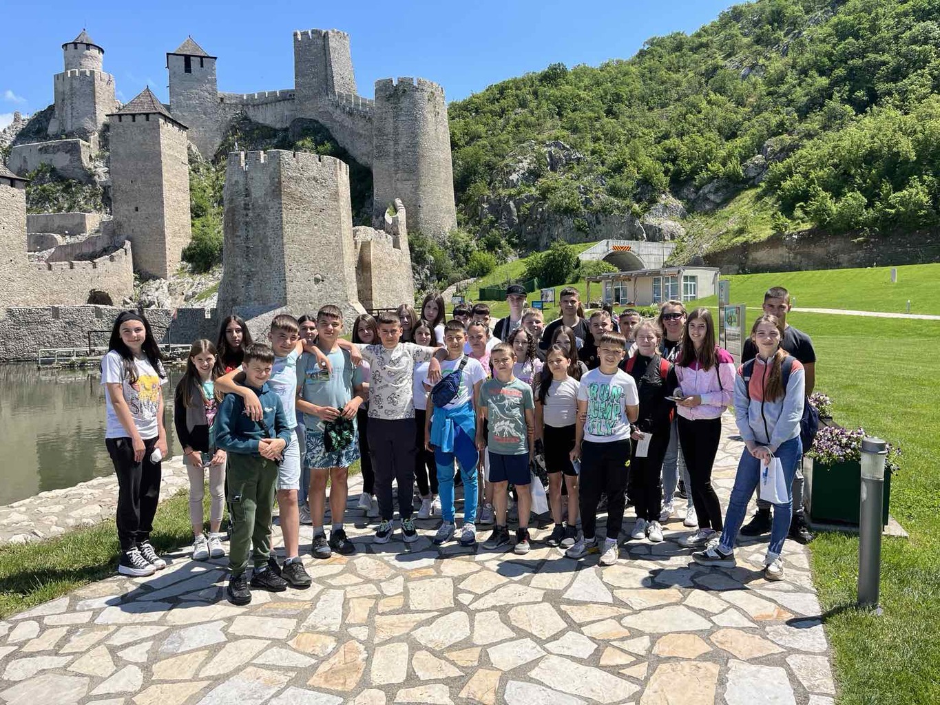 У суботу, 10. маја, реализована је једнодневна екскурзија ученика старијих разреда. Путни правац је био Голубац - Лепенски Вир. У добром расположењу, након тросатног путовања из Сакула и Баранде, уследио је обилазак Голубачке тврђаве, споменика културе од изузетног значаја, смештеног на десној обали Дунава и на самом улазу у Ђердапску клисуру. Кроз кратак филм и причу локалног водича ученици су се упознали са бурном историјом тврђаве, њених девет кула, биткама између Османског царства и краљевине Угарске, као и значајном 1868. годином када је тврђава коначно предата на управу српском кнезу Михаилу Обреновићу. У Палати Голубачке тврђаве постављена је изложба ратничке опреме и наоружања из средњег века. Могли су се видети оригинални предмети, бројни реквизити и модели, информативни панои и дигитални садржаји и научити понешто о вештини ратовања хладним и ватреним оружјем посаде тврђаве из тог доба. |