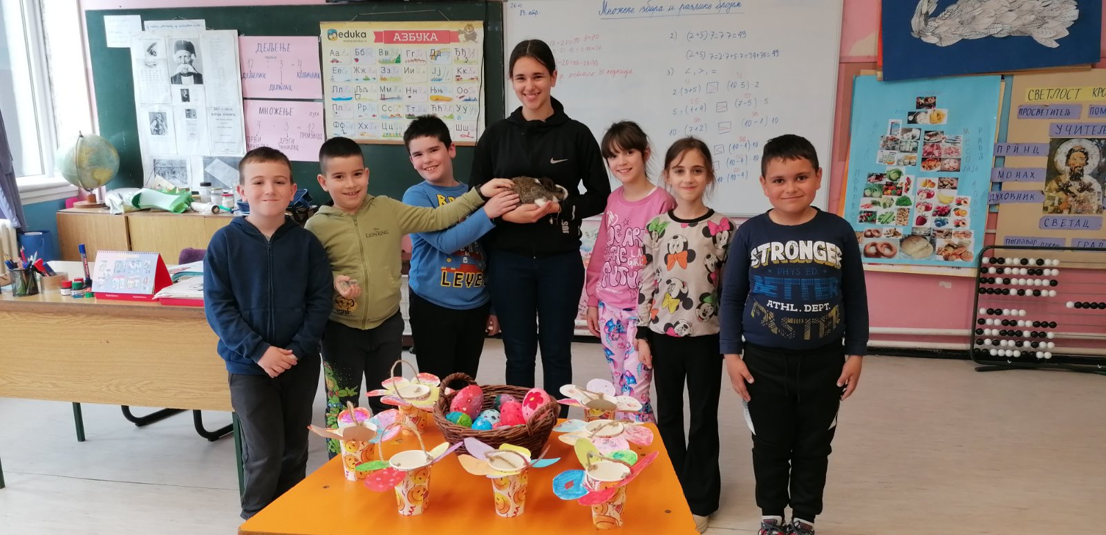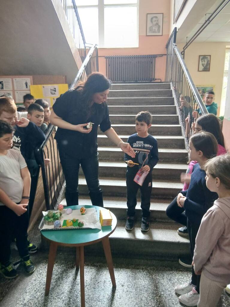 Ученици 4/2 Издвојеног одељења „Олга Петров“ у Баранди, у четвртак 24. априла, имали су прилику да угосте две баке. Повод је била наставна јединица из српског језика „Народни обичаји“. Баке су причале о обичајима који су присутни у нашем народу и који се кроз генерације преносе с колена на колено. Подсетили смо се обичаја везаних за рођендан, Ускрс, Божић, венчање, рођење детета... Једна бака нам је испричала о традиционалном узгоју пилића и том приликом донела домаће пиле и показала га ученицима. Друга бака је говорила о фарбању јаја луковином, њиховом скривању по дворишту и проналажењу као посебном дечјем доживљају. Причала је и о много већем поштовању одраслих када је она била дете него што је то данас. |