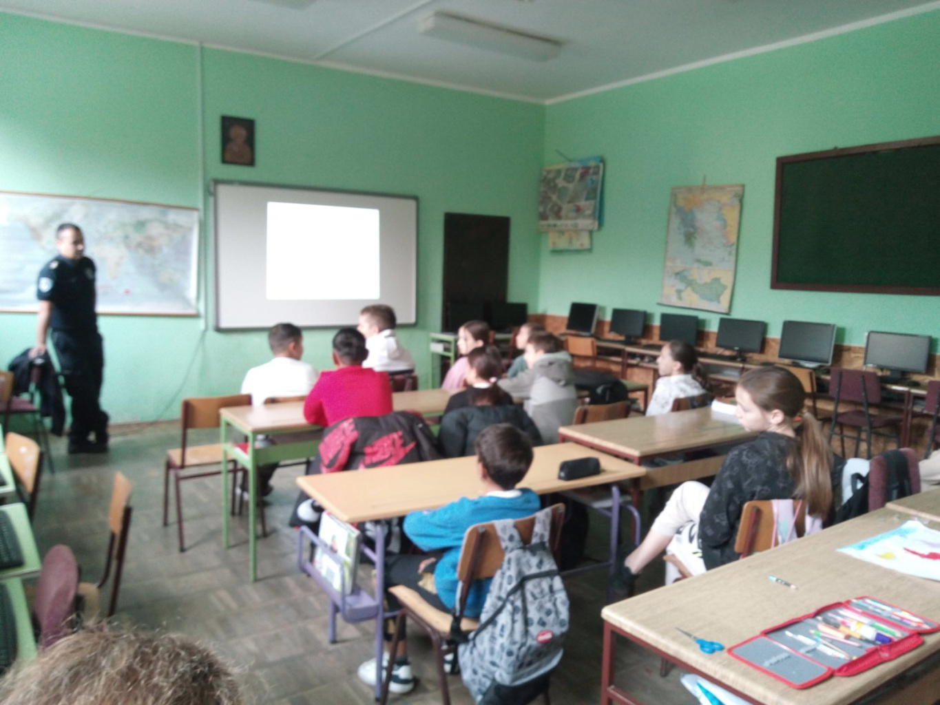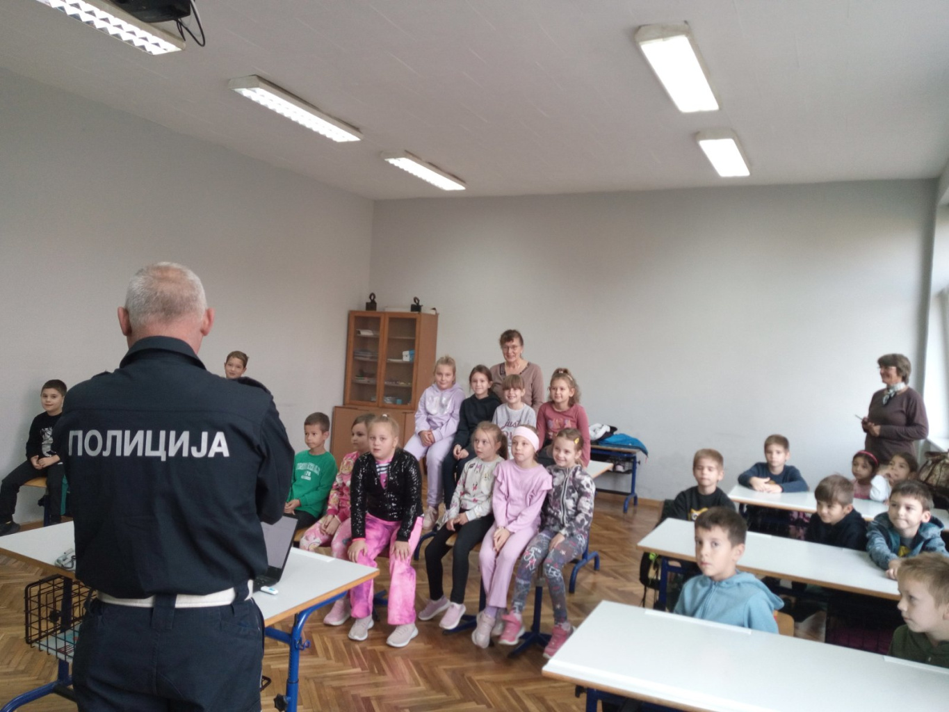 У уторак 28. октобра представници Министарства унутрашњих послова и Ватрогасне службе посетили су нашу школу и одржали предавање на тему „Превенција вршњачког насиља у стварном и виртуелном окружењу” за ученике првог, другог, петог и осмог разреда. Радионица је одржана у оквиру пројекта „Заједно и безбедно кроз детињство” са циљем да се ученици упознају са основним начелима безбедности, како у реалном свету, тако и на интернету. Ученици су на предавању сазнали како да препознају насиље и дискриминацију, како да сачувају личне податке од нежељених посматрача, како да одреагују на насиље и коме се у непожељним ситуацијама могу обратити. На крају предавања ученици су имали прилике да покажу своје знање решавањем теста. Млађим разредима одржано је предавање о поступању у случају ванредних ситуација, као што су: пожар, поплава, земљотрес, а ученици су од ватрогасца научили како да правилно реагују и поступе у случају да се нађу у непожељној ситуацији. Овим путем ученици су упознати са основама безбедности, а следећа едукативна радионица биће посвећена упознавању ученика осмог разреда са полицијском професијом и одржаће се у току другог полугодишта. Песма СЕМАФОР у изведби наших најмлађих ученика